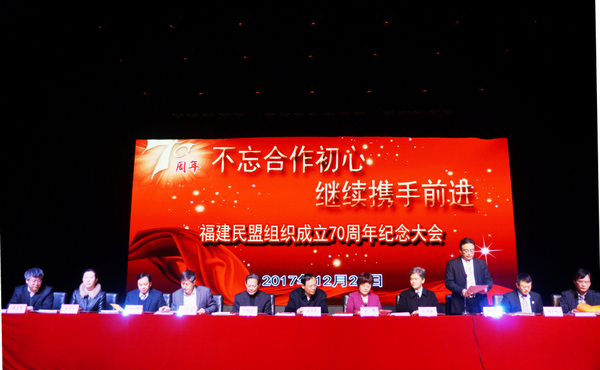阮诗玮代表民盟福建省委会,向莅临大会的臧杰斌副部长、曲伟部长,以及长期以来关心支持福建民盟发展的各级领导和各界朋友表示衷心感谢,向全省广大盟员致以亲切的问候。他回顾了福建民盟组织70年来不平凡的峥嵘岁月,指出纪念福建民盟组织成立70周年,就是要坚持“思想塑盟”,坚定走中国特色社会主义政治发展道路;就是要坚持“合作兴盟”,不忘合作初心,继续携手前进;就是要坚持“人才强盟”,全面提高民盟自身建设水平。