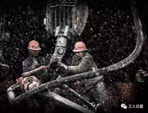 战严寒,两个农名工兄弟在钻井平台上坚守岗位。蔡熙 摄