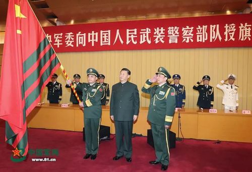 昨天,中央军委向武警部队授旗仪式在北京八一大楼举行。中共中央总书记、国家主席、中央军委主席习近平向武警部队授旗并致训词。