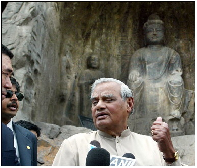 瓦杰帕伊参观洛阳龙门石窟。