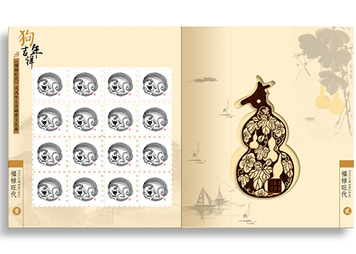 而作为中国集邮与生肖文化的代表作之一,《戊戌年》系列邮品在设计与取材方面传承和吸收了木雕、陶瓷以及瓷板画等多种中国传统工艺。例如,《福禄旺代》葫芦套装,采用国家级非物质文化遗产徽州木雕中的透雕技艺精制而成,将木质雕塑的淳朴自然表现得淋漓精致,产生了浓厚的复古情调。