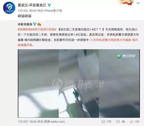 央视网消息:近日,网上传出这样一个消息:黑龙江哈尔滨一二手房装修时墙里抠出1.4亿现金,有网友误传称有贪官落马。