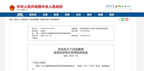 一、 为促进深圳经济特区一体化发展,结合特区建设发展面临的新形势新使命新任务,同意撤销深圳经济特区管理线。