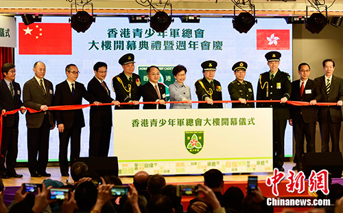 中新社香港1月14日电(记者杨喆)香港青少年军总会14日在港举行总会大楼开幕典礼暨三周年会庆。中央政府驻港联络办主任王志民、香港特别行政区行政长官林郑月娥及解放军驻港部队副司令员田永江少将担任主礼嘉宾,共同见证大楼揭幕。