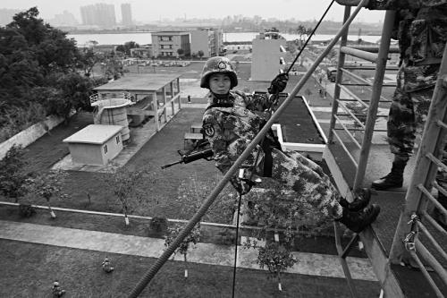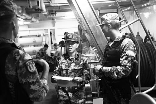 1、 亚丁湾护航期间,宋玺进行军事训练。