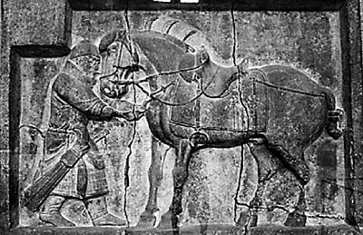 除中亚之外,漠北也是中原良马的重要来源。《旧唐书·铁勒传》载,蒙古高原西北部的骨利干,于贞观中“献良马十匹”,“太宗奇其骏异,为之制名,号为十骥:一曰腾霜白,二曰皎雪骢,三曰凝露骢,四曰悬光骢,五曰决波騟,六曰飞霞骠,七曰发电赤,八曰流金騧,九曰翺麟紫,十曰奔虹赤”。唐代来自中亚的良马在当时口碑中最知名者,乃为唐太宗所喜爱的六匹骏马,太宗逝后,为之刻像陪葬,称为昭陵六骏。按宋敏求《长安志》卷中《昭陵图说》,六骏的顺序分别是青骓、什伐赤、特勤骠、飒露紫、拳毛騧、白蹄乌。其中,特勤骠中的“特勤”,为突厥语tegin的音译,指可汗弟子;“什伐赤”之“什伐”,或为上述“叱拨”之唐代音译,即伊朗语“马”。