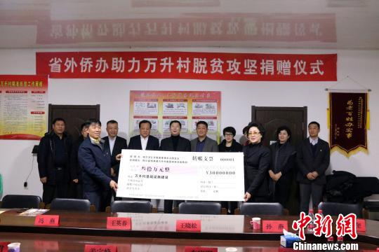 中新网哈尔滨1月16日电(记者王琳)16日,由黑龙江省外事侨务办公室发起的“侨务扶贫桦川行”在佳木斯市桦川县悦来镇万升村举行,该省侨商代表、省侨商会会长冯燕现场个人捐赠30万元人民币,将侨界建设家乡的爱心足迹绵延至这座贫困小村。