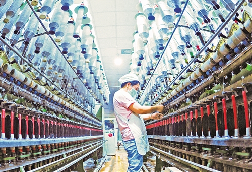 1月18日,江苏省连云港市海州区一家纺织企业工人在生产线上工作。 (新华社发)