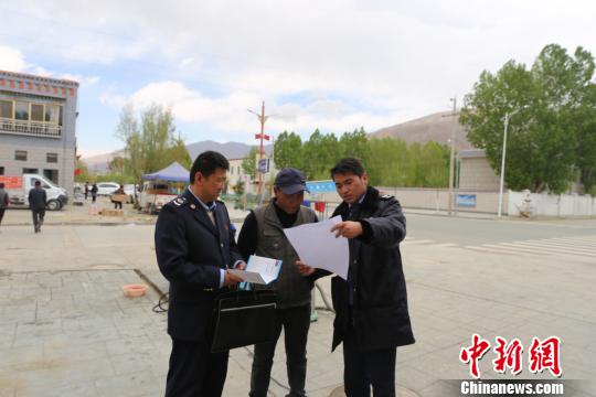 西藏山南市琼结县国税工作人员向藏族纳税人讲解营改增政策。赵朗摄