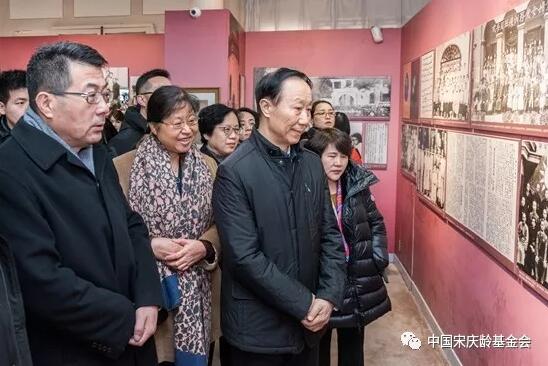 全国政协副主席、中国宋庆龄基金会主席王家瑞参观“菊石之谊——宋庆龄与何香凝”文物图片展