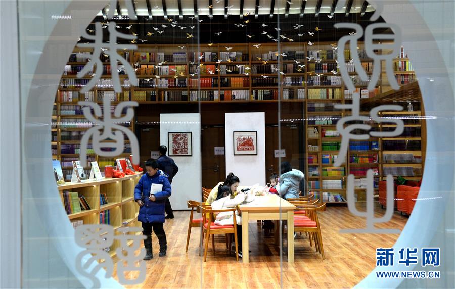延安学习书院成了市民假日周末读书学习的好去处(2017年12月10日摄)。新华社发(祁小军 摄)