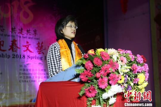 中国驻尼泊尔大使于红在致辞中介绍了2017年中国的发展情况,并回顾了中尼关系在2017年所取得的新成就、新发展。“中国真诚希望尼泊尔实现稳定和发展,愿继续加强中尼合作,推动两国关系不断向前发展。”她说。