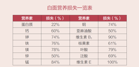 大米和面粉不是越白越好。从营养学的角度,提倡多吃全谷物,因为加工过度的谷物,其谷皮、糊粉层、胚芽都被分离出去,仅留下淀粉含量高的胚乳部分,导致营养水平下降,膳食纤维损失严重,B 族维生素和矿物质的损失为60%~80%。米、面越白说明谷物加工的精度越高,长期食用精白米面,可能会造成人体缺乏维生素和矿物质,甚至导致维生素缺乏病,如“脚气病”,人体内维生素B1不足可引起“脚气病”。