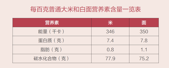 在维生素、矿物质方面,米和面也平分秋色,大米这一方面多点,白面另一方面多点,没有悬殊的差别。