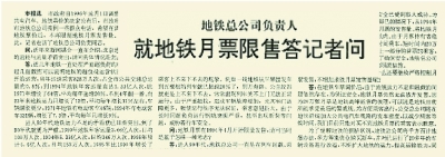 1995年,地铁部门负责人曾专门就公交地铁联合月票限售做出解释。据了解,进入上世纪90年代,地铁部门一直是在列车超载、乘客拥挤的状态下承担运输任务。1990年,地铁年客运量3.66亿人次,日均100万人次;1994年,年客运量5.33亿人次,日均146万人次。1995年比1990年客运量增长53%,而运力只增长了11%。这样一来,每天的运营安全很难保证,乘客的安全受到很大威胁。为保证乘客安全,只能将公交地铁联合月票严格控制在20万张以内。(1995年12月30日《北京日报》1版,《地铁总公司负责人就地铁月票限售答记者问》)
