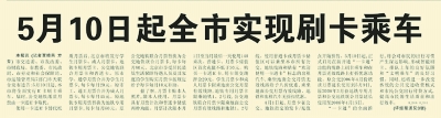 2006年5月10日,本市全面实行IC卡刷卡乘车,公交纸质月票被替代,结束了历史使命?!耙豢ㄍā钡娜嫱菩校允忻竦某鲂邢肮卟松钤队跋?,形成了智能刷卡、排队上车的良好氛围和文明乘车的良好习惯。同时,还进一步改变了传统的公共交通收费模式和市民公交出行付费方式,提高了市民的出行效率。(2006年3月22日《北京日报》5版,《5月10日起全市实现刷卡乘车》)
