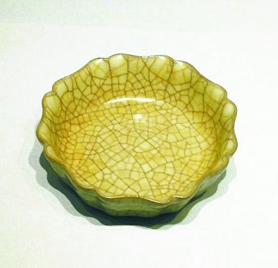 “金丝铁线”正是哥窑器物独一无二的特征。此特征首先源自瓷器表面的开片。走进故宫延禧宫正在举办的“金丝铁线——故宫博物院哥窑瓷器展”,迎面墙上是一块大展板,浅蓝色的底上,四分五裂片状图案点明了哥窑瓷器最为显著的特征——开片。传世哥窑瓷器釉面所产生的开片纹本属于烧造工艺上的一种缺陷,是瓷胎与釉膨胀系数不一致所导致的后果。釉面被分割成大大小小的块面,疏密天成,窑工发现后认为是废品,上报督陶官,请求报废处理。管理者看问题的眼光毕竟与窑工不同,他们在破碎的釉面上发现了一种天然的韵律美,能带给人一种崭新的艺术享受,于是将本欲丢弃的器物保留下来,并且由此开始刻意追求这样一种独特的美。经过窑工反复试验,终于掌握了瓷器釉面开裂的规律,哥窑瓷器就此诞生。