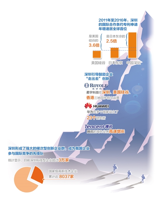 统计显示,目前深圳科技型企业超过3万家,国家级高新技术企业累计达8037家,形成了强大的梯次型创新企业群,成为我国企业参与国际竞争的先锋队。