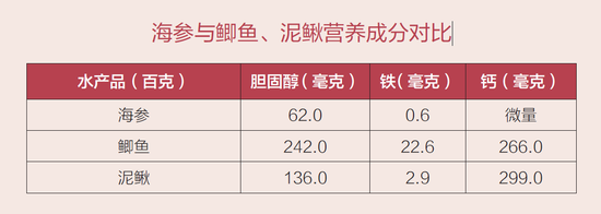 从营养的角度看,海参不过是一种蛋白质量不太好的高蛋白、低脂肪、低胆固醇食物,有很多食物都可以替代海参。鸡蛋蛋白质比海参蛋白质好,香菇多糖比海参多糖含量高,大豆中的皂苷、猪肉中的铁、鲫鱼和泥鳅所含的钙都不比海参差,甚至高出很多。