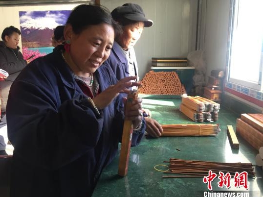 图为西藏民众参与藏香扶贫项目。赵朗摄
