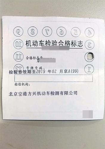 一辆京牌“问题车”找车虫代验车后,拿到了年检标志。