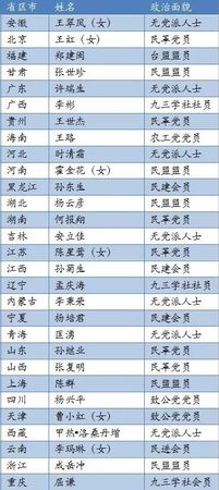 从性别看,29位党外副省长中有6位都是女性,分别是安徽省副省长王翠凤、北京市副市长王红、河南省副省长霍金花、江苏省副省长陈星莺、天津市副市长曹小红和云南省副省长李玛琳。除了曹小红,其余五人都是首次当选。