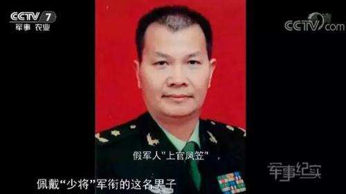 假冒将军的“上官凤笠”有过当兵经历,因违反部队纪律被除名、取消军衔。中央军委政法委保卫局联合公安部刑侦局在全国开展的打击假冒军人违法犯罪专项行动中,抓捕的不少假军人,连兵都没当过,却能以军人的身份骗取千万、上千万的资产。