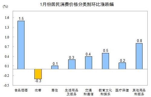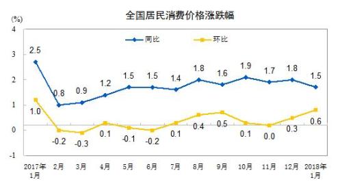 统计局:2018年1月份居民消费价格同比上涨1.5%
