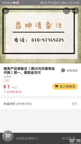 商家:你要备注一下,烟不能从网上付钱,只是从网上代购,15元必须要买点商品什么的。