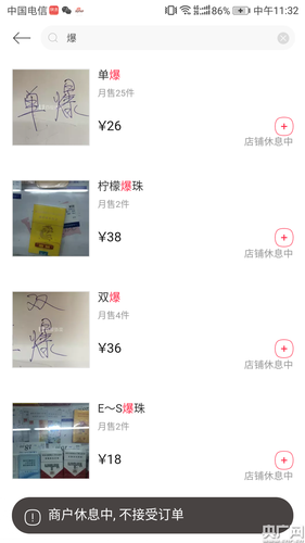 网上有些超市将香烟的名字改成“双爆”、“红”、“京”等暗号来销售香烟。在上海百度外卖平台,输入“双爆”,一家超市提供了“单爆”和“双爆”、柠檬爆珠等多款香烟,其中“单爆”产品月销售25件。另一家叫做“全时超市(吉里艺术区店)”的商家,则有多达11款爆珠香烟售卖。
