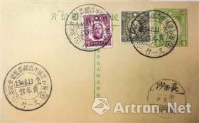这次总算见到了它的庐山真面目。该枚邮品不仅品相好,而且加盖的邮政日戳和邮展纪念章非常清楚。它制作的载体是用1枚民国三版孙中山像4分邮资明信片加贴普票人物像2角1分、2角5分各1枚,邮票上分别销双圈圆形图章,大圈内,上方大半圆形文字“‘长沙首届中西邮票展览会纪念’左右为一梅花图案/下方小半圆形文字‘又一村’/小圈内分上下两排文字,上为‘1948.1.1-3’,下为‘青年馆’”,明信片的左下方空白处盖同一图章,明信片的右下方空白处,加盖点线三格“长沙(辛)/卅七一月一日/AHSSNAHl0”邮政日戳。这枚原汁原味的邮品,不仅填补了《长沙集邮史》《湖南集邮史》无图的缺陷,而且从图章上看邮展的名称应是“中西邮票”,而不是相关文献上误传记载的“中外邮票”。