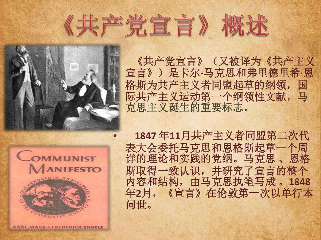 概括《共产党宣言》核心的基本思想时,恩格斯在1888年英文版序言中写下了“属于马克思的”思想——“每一历史时代主要的经济生产方式与交换方式以及必然由此产生的社会结构,是该时代政治的和精神的历史所赖以确立的基础,并且只有从这一基础出发,这一历史才能得到说明”。恰如这段话所概括的,《共产党宣言》通篇贯穿彻底的历史唯物主义,为人们认识世界、改造世界提供了科学的思想工具。也正因为如此,《共产党宣言》被尊为学习马克思主义的“入门老师”“小百科全书”。