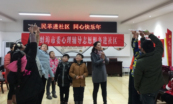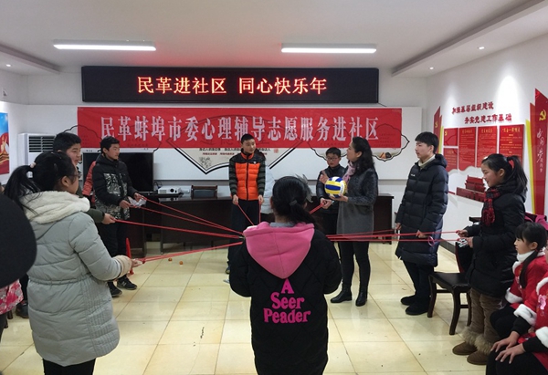 2月8日,民革安徽省蚌埠市委会组织机关干部及民革党员,赴蚌埠市龙子湖区开展“心理辅导进社区”活动。
