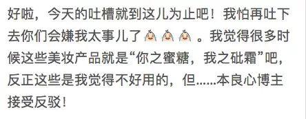 看来范爷踩的雷也蛮多的,看完这篇吐槽笔记,还蛮有亲切感的。而在吐槽的同时,她也非?;队蠹姨岢龇床?,毕竟这些美妆产品都是“你之蜜糖,我之砒霜”嘛,果然是良心博主了!
