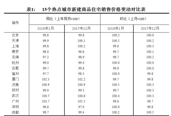 1月份,在分类调控、因城施策的房地产市场调控政策继续作用下,70个大中城市中15个热点城市新建商品住宅销售价格继续保持稳定。