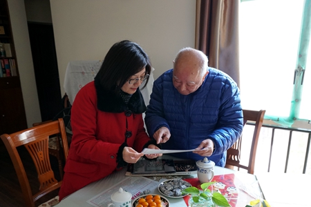 在吴仲信家中,钱雨晴向吴老介绍了上月召开的市“两会”情况以及民建会员担任全国及上海市人大代表和政协委员的情况。听到民建会员在“两会”上积极建言,取得了良好的社会反响,吴老十分欣喜,特地拿出自己在民建和市政协提案委工作时的照片,如数家珍,娓娓道来,分享当年参与工作时的心路历程。钱雨晴表示,老同志的经验都是民建的宝贵财富,市委在今后的工作中将继续发扬和传承。在得知吴老刚刚感冒初愈后,钱雨晴特别叮嘱他要保重身体,注意休息。