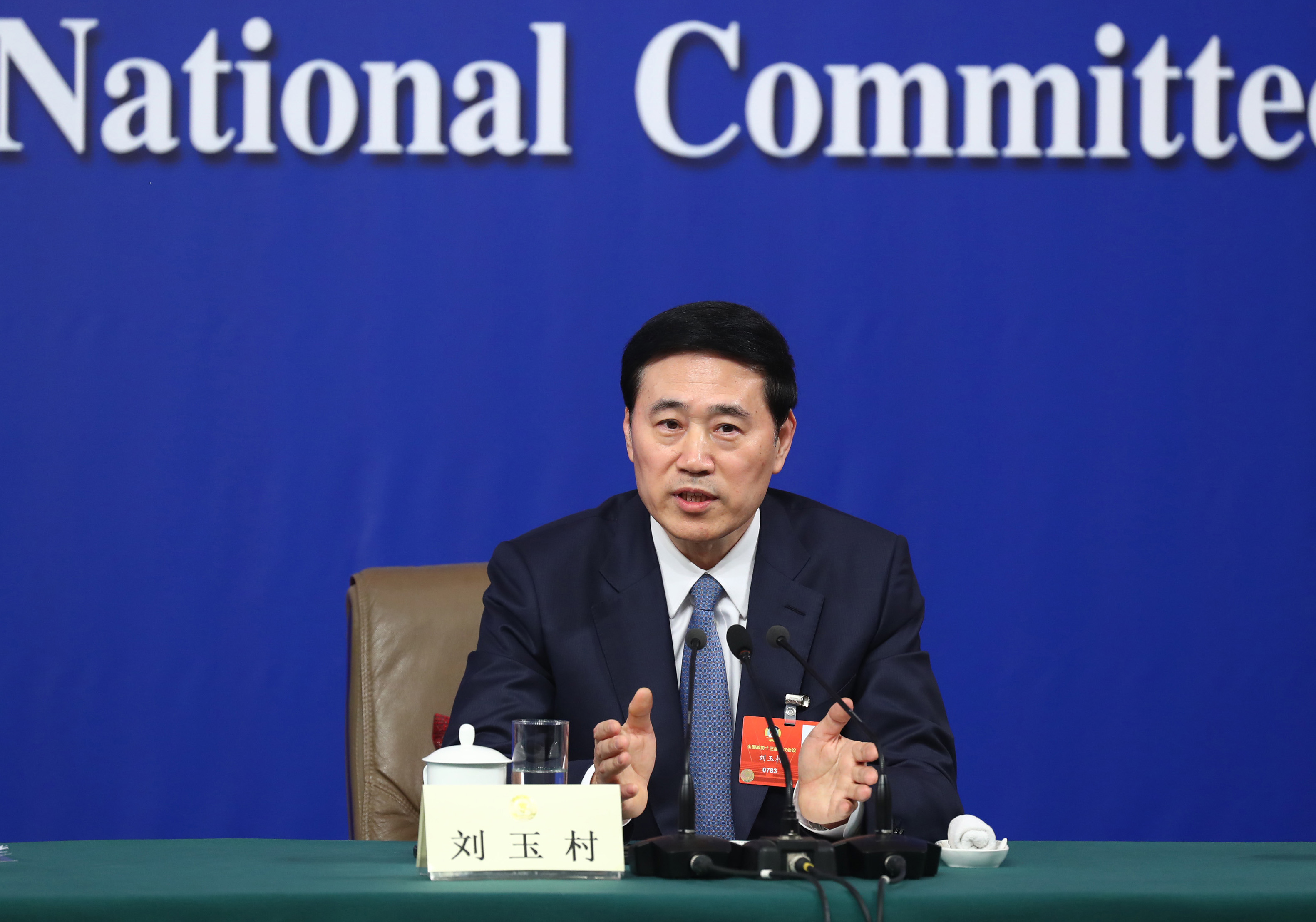 3月10日,全国政协十三届一次会议新闻中心举行记者会,邀请全国政协委员黄润秋、刘利民、许家印、刘玉村、刘强东谈提高保障和改善民生水平。这是刘玉村在回答记者提问。新华社记者 邢广利 摄