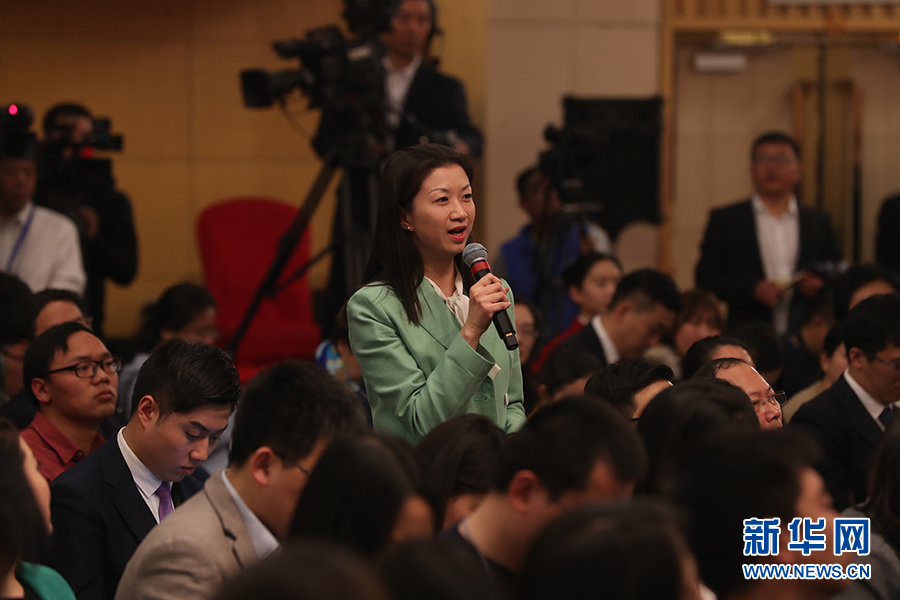 图为江苏省广播电视总台记者提问。新华网 中国政府网 曲植 摄