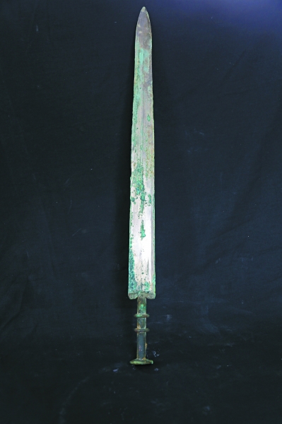 西咸新区空港新城岩村秦人墓葬发掘中发现的铜剑(资料照片)。
