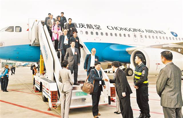 三月十五日,参加全国政协十三届一次会议的住渝全国政协委员,在圆满完成大会各项议程后返回重庆。记者 熊 明 摄