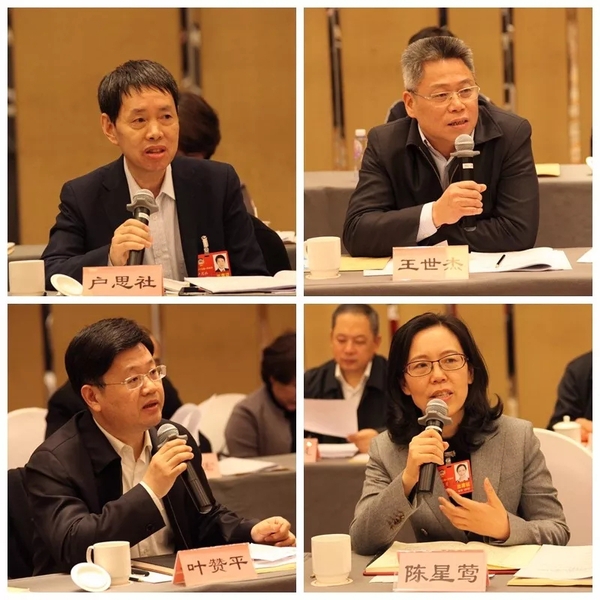 左下:叶赞平常委发言 右下:陈星莺常委发言