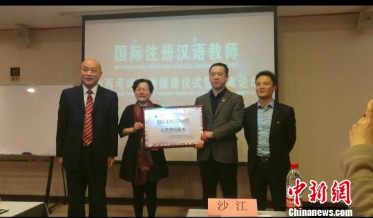 国际注册汉语教师“山西考培基地”24日在山西太原揭牌。主办方提供摄