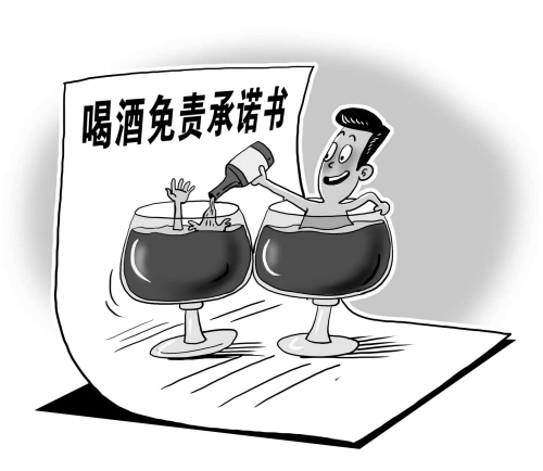 近日,一张签满名字、摁满红手印的“喝酒免责承诺书”在网上热传,承诺书称参与聚会的人如果因为酒后造成本人和他人的一切后果,责任由自己承担,跟他人无关。虽然春节假期刚过,但亲朋好友之间少不了聚会喝酒,这种承诺书会有作用吗?(2月23日《北京青年报》)
