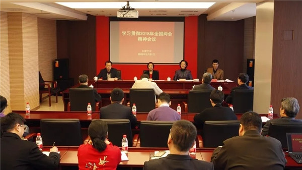 3月22日,致公党中央机关召开两会精神学习会?;嵋檠傲讼敖皆诿衩恕⒅鹿?、无党派人士、侨联界委员联组会上的重要讲话精神,传达了刚刚闭幕的十三届全国人大一次会议和全国政协十三届一次会议的主要精神。致公党中央常务副主席蒋作君,副主席闫小培、曹鸿鸣、吕彩霞出席会议并讲话。