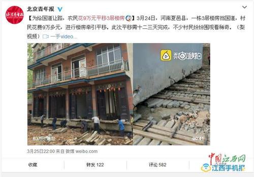 3月26日,一则“河南农民花9万平移3层楼房”的新闻登上新浪微博热搜,引发网民热议,不少人大感诧异,直言“还能这么玩?”