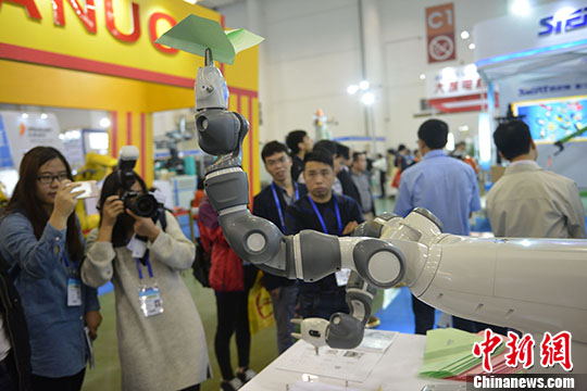 资料图:一台会折纸飞机的机器人亮相厦门,吸人眼球。(中新社记者吕明摄)