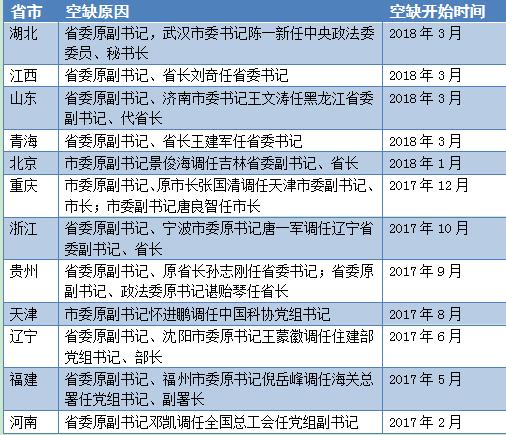 空缺省份详见下表,政知圈按照人事变动的时间排列了一下。