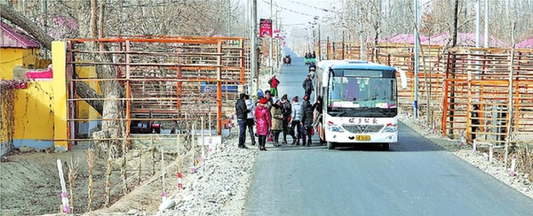 2月2日,于田县托格日尕孜乡库木巴格村村民乘坐通往县城的公交车,乡村柏油路让村民出行更便捷(资料图)。甄世新摄