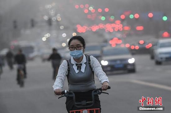 资料图:沙尘天气下,一名行人戴口罩出行。 中新社记者 武俊杰 摄