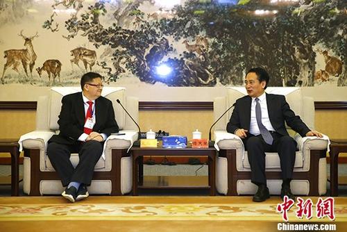 4月3日,中国海外交流协会副会长兼秘书长谭天星在北京会见马来西亚青年总团联合访华团。中新社记者富田摄